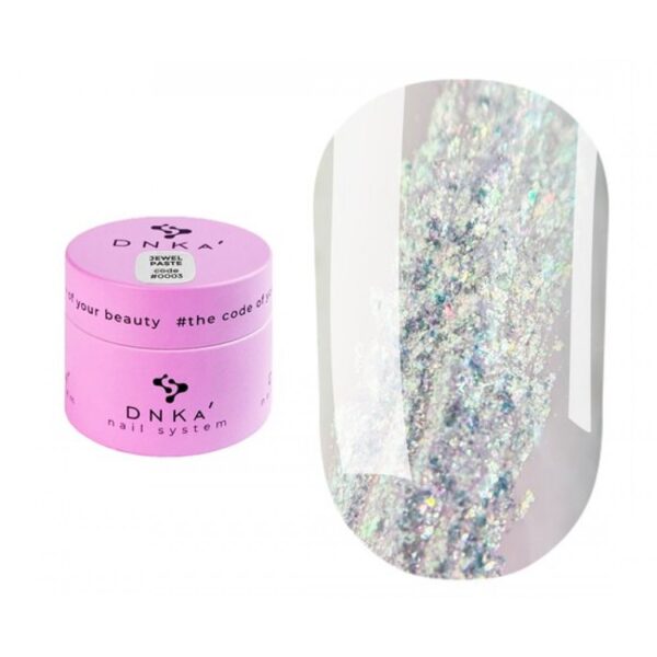 Η DNKa Jewel Paste Nail Decorations είναι περλέ πάστα, με μικρά γυαλιστερά σωματίδια τα οποία αντανακλούν πολύχρωμες αποχρώσεις. Χαρίζει εξαιρετικά λαμπερό αποτέλεσμα και δεν έχει κολλώδη σύσταση.