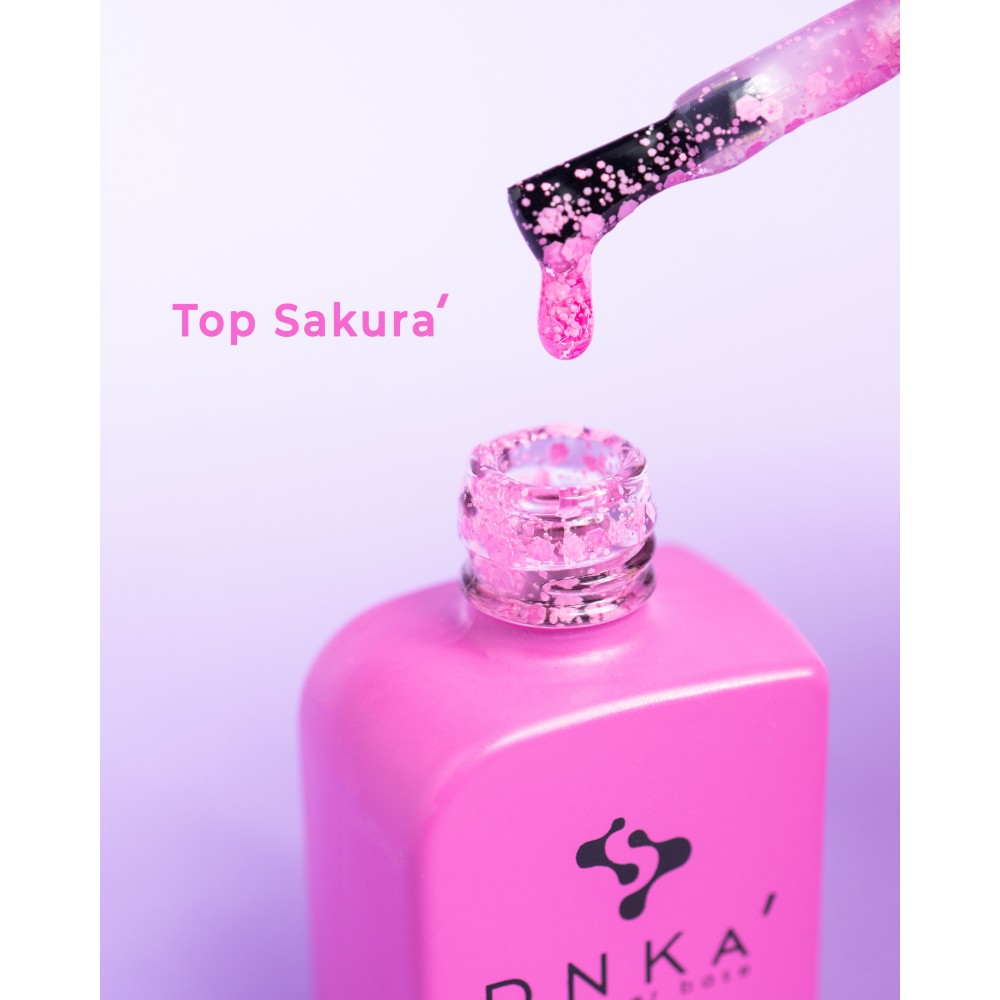 Το DNKa Top Coat Sakura είναι ένα κορυφαίο, χρωματισμένο τοπ με ροζ πολύγωνα. Δεν είναι κολλώδη και δίνει ένα εντυπωσιακό γυαλιστερό αποτέλεσμα. Είναι τέλειο για τη δημιουργία σχεδίων, τόσο σε ανοιχτόχρωμες όσο και σε σκούρες αποχρώσεις. Αυτοεπιπεδώνεται καλά, δεν κιτρινίζει, παρέχει αξιόπιστη προστασία από μηχανικές βλάβες και αποτρέπει τις ρωγμές και τα σπασίματα. Δεν φθείρεται και δε λερώνεται κατά τη χρήση. Έχει μέτρια σύσταση και δεν ρέει στην επιδερμίδα. Διατηρεί την άψογη εμφάνιση του έως και τρεις εβδομάδες.